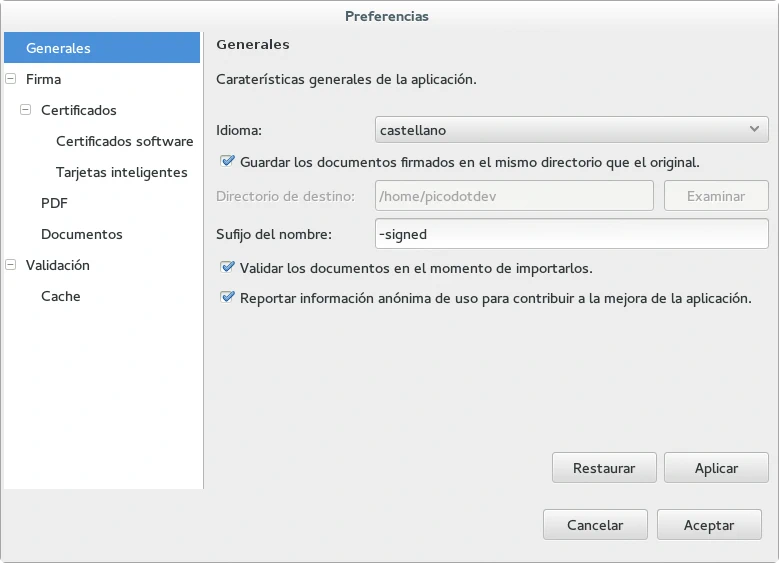 En el caso de los archivos pdf Sinadura por defecto incrusta además de la firma una marca de agua en la primera página aunque se pueden cambiar algunas preferencias en «Archivo> Preferencias»:
