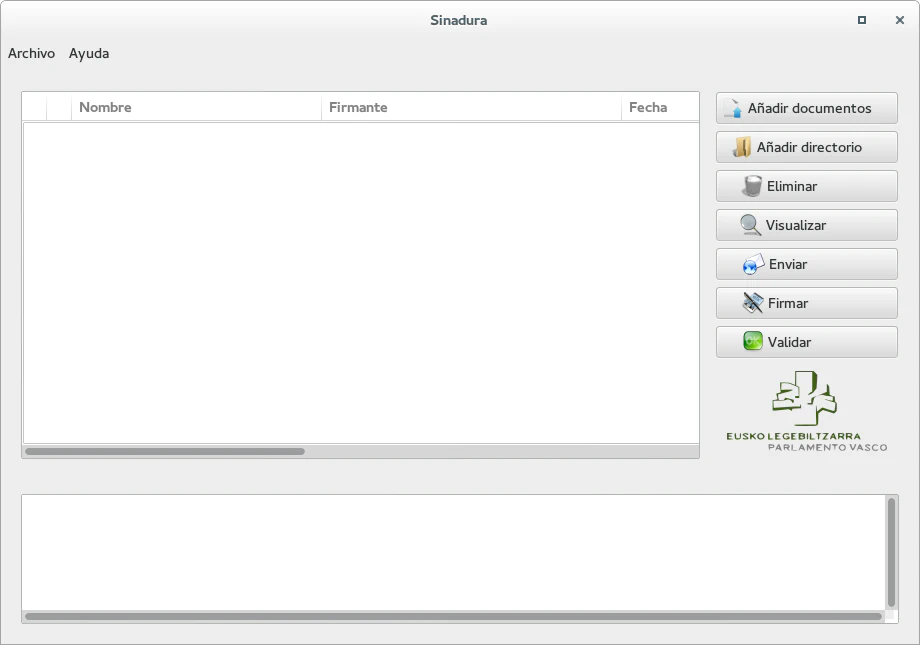 Inicialmente veremos una pantalla como la siguiente con una lista de archivos vacíos y una serie de botones para realizar varias acciones.