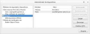- Archivo del módulo: en el caso de Arch Linux debemos poner «/usr/lib/opensc-pkcs11.so», en otras distribuciones será algo similar si no es lo mismo.