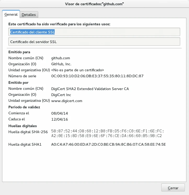Por otra parte los certificados SSL se generan para un dominio en concreto con lo que en principio se debería comprar un certificado por cada dominio en el que deseemos usar una comunicación segura. Sin embargo, para evitar comprar múltiples certificados para los diferentes dominios o subdominios podemos comprar un certificado wildcard que nos servirá para los subdominios (*.ejemplo.com) o un certificado multidominio (ejemplo.com, ejemplo.net, …) para como su nombre indica varios dominios. En los certificados de empresa se solicitan datos datos adicionales al adquirirlo y en los detalles del certificado aparece el nombre de la empresa (campo Organización (O) como en el caso de GitHub).