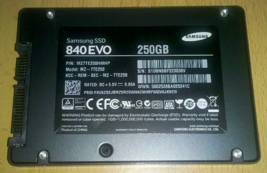 Así que después de estar leyendo prácticamente en todas las opiniones de los usuarios que han adquirido un SSD la apreciable mejora conseguida finalmente decidí comprar uno. El modelo que he elegido ha sido un Samsung 840 EVO SSD de 250 GB, que en el momento de adquirirlo es posiblemente una de las mejores opciones en cuanto calidad/precio, aunque posteriormente ha salido la evolución de este modelo el Samsung 850 EVO de 250 GB con la novedad de que usa 3D NAND con la que consigue mayor densidad de almacenamiento que para los usuarios se traducirá en menor coste, otra buena opción era el Crucial MX100 256 GB o el Crucial M550 256 GB. Los SSD aún siguen siendo un producto con un precio más alto que los discos mecánicos pero desde la aparición de los primeros modelos han bajado notablemente de precio y ya se están poniendo alrededor de los 110 € para los modelos de 250 GB y en 65 € para los modelos de 120 GB, unos precios que empiezan a ser muy accesibles y posiblemente sus ventas empiecen a dispararse y a ser incluidos de serie en los equipos nuevos. Hay modelos de más capacidad, de 1 TB también en la serie Samsung 850 EVO y 500 GB pero los precios son algo abultados y posiblemente tampoco necesitemos tanto espacio.