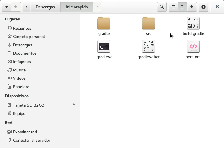 Aunque el arquetipo lo realizamos con Maven los archivos que genera son válidos tanto para trabajar con Maven como con Gradle, una vez que tenemos la aplicación generada podemos usar el que prefiramos, probablemente mejor Gradle. Los archivos generados son los siguientes: