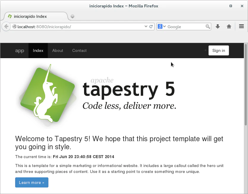 Y accediendo con el navegador a la URL que nos indica Tapestry al final de las trazas veremos la aplicación en funcionamiento.
