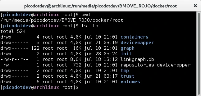 Por defecto el directorio donde se guardan las imágenes y los contenedores junto con otros metadatos de Docker es /var/lib/docker. En mi caso hace un tiempo me compre un disco de estado sólido Samsung 840 EVO de 250 GiB y comenté en el artículo del anterior enlace. Aunque probablemente un disco SSD sea suficientemente fiable como para que antes de que falle cambiémos de ordenador porque ya es antiguo, yo trato de evitar hacer muchas escrituras al disco. Al trabajar con Docker ya sea descargando imágenes, construyendo imágenes propias con archivos Dockerfile y al arrancar contenedores cuyos procesos escriben en disco prefiero externalizar esas escrituras en una unidad USB ya sea un pendrive o un disco duro. En este artículo comentaré como modificar Docker para que las imágenes y los contenedores estén almacenados en una memoria USB o en otra localización de la por defecto.
