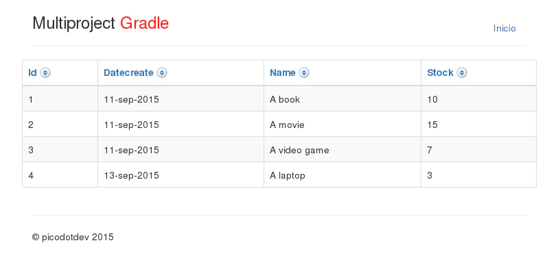 Una vez tenemos en cada directorio los archivos build.gradle y el resto de archivos que necesite cada proyecto (archivos .java, .tml, …) podemos construir los módulos a la vez o de forma individual. Podemos iniciar los proyectos web y acceder a ellos con el navegador con: