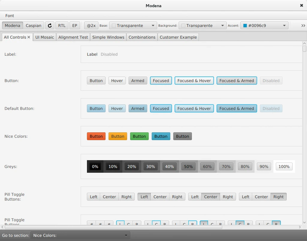 En las demostraciones y ejemplos de Java 8 hay unos cuantos referentes a JavaFX bastante completos. Iniciando la aplicación contenida en Ensemble.jar podemos ver numerosas funcionalidades (animación, efectos visuales, gráficas, controles, gráficos 2D, gráficos 3D, lenguaje, disposición, multimedia, …), también con la aplicación Modena.jar podemos ver como son visualmente por defecto los diferentes elementos gráficos de JavaFX.