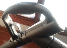Por poner algún defecto después de usarla diré que no se puede guardar de forma vertical por su forma de cuerpo y bola, sus dimensiones son de unos 51cm de ancho x 31cm de alto x 26cm fondo mirada desde un lateral algo más grande que otras aspiradoras como la Rowenta que comentaba anteriormente. El gatillo es muy cómodo pero en caso de querer tenerlo constantemente abierto para disminuir la succión en el accesorio puede ser cansino, no tiene una posición para dejarlo abierto sin usar el gatillo de la manguera. Este modelo realmente incorpora más accesorios que los indicados en la caja por lo que realmente no debería ser un defecto, en las fotos se ve uno multifunción para esquinas embalados en una bolsa. Usando el accesorio de suelos duros y parquet se une al tubo usando un mecanismo que me queda justo a la altura de una tabla de una cama con lo que al aspirar por debajo de ella si no tengo cuidado choca con el mecanismo de liberación y el accesorio se desengancha, el mecanismo podría estar colocado en un lateral o en la parte de atrás y esto se evitaría. Aún con esto para mí estas cosas no hacen desmerecer la aspiradora.