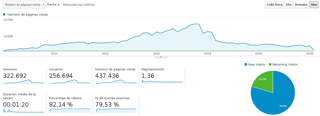 Muchas bitácoras perecen y son abandonadas al cabo de un par de años, quizá sus autores desmotivados por las pocas visitas que reciben o por el tiempo que se dan cuenta que les requiere dedicar a escribir en una bitácora y más aún editar los artículos. En mi caso aún no he perdido las ganas por seguir escribiendo y son incluso mayores. La experiencia acumulada durante este tiempo también se nota en la redacción de los artículos.