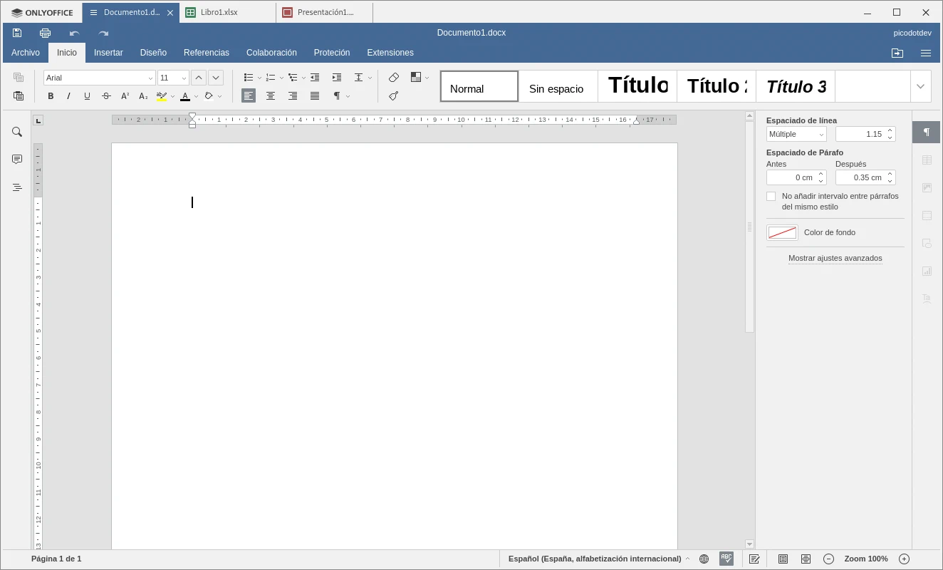 If we like the ribbon interface more without menus with a multitude of options and that it is more careful in terms of design than LibreOffice, similar to the one used in Microsoft Office, WPS Office is an option to take into account, it can also be activated in classic mode with menus and toolbars supporting the editing of several documents in tabs. It only offers the basic programs of an office suite: text editor, spreadsheets and presentations. For personal use it is free with some limitations when printing and exporting documents to PDF format but more than enough even without all the options only available in the payment option.