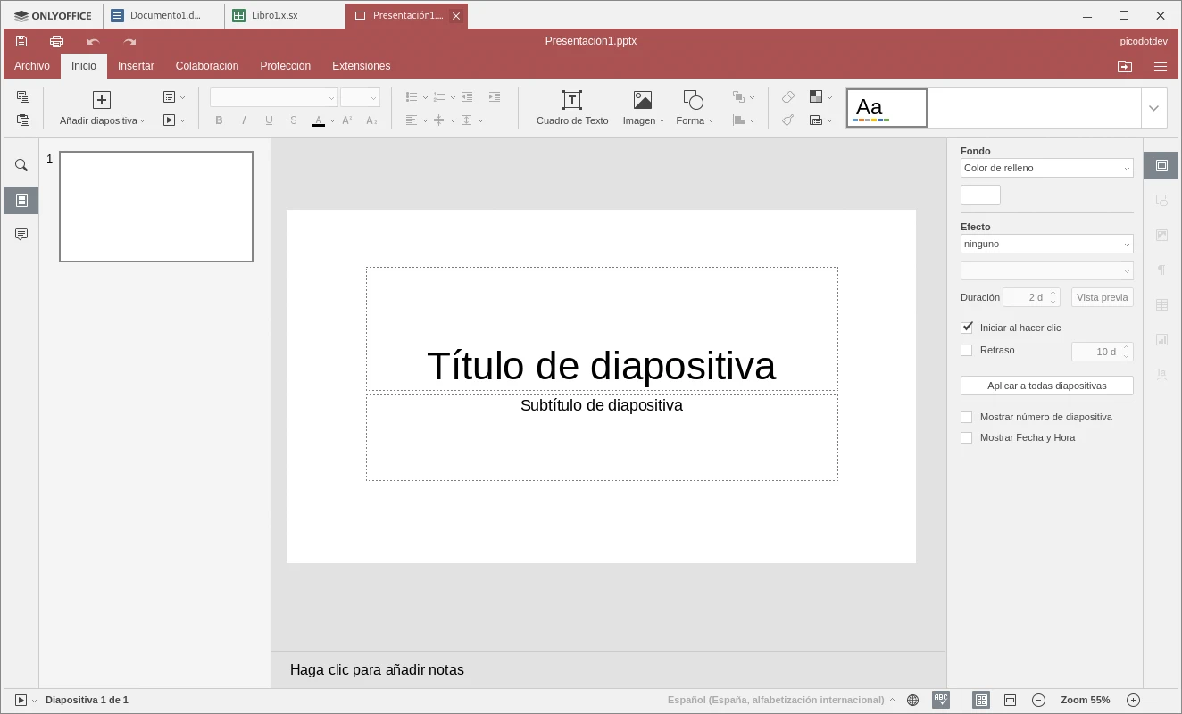 OnlyOffice also offers a basic office suite consisting of documents, spreadsheets and presentations. It has a desktop application for the main operating systems and it can also be run in its own cloud hosted with Nextcloud preserving document ownership and without the inconvenience of Google Docs loss of privacy. They are applications without all the options offered by Microsoft Office or LibreOffice but for sufficient basic use.