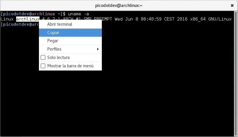 Combinación de teclas para copiar y pegar en la terminal