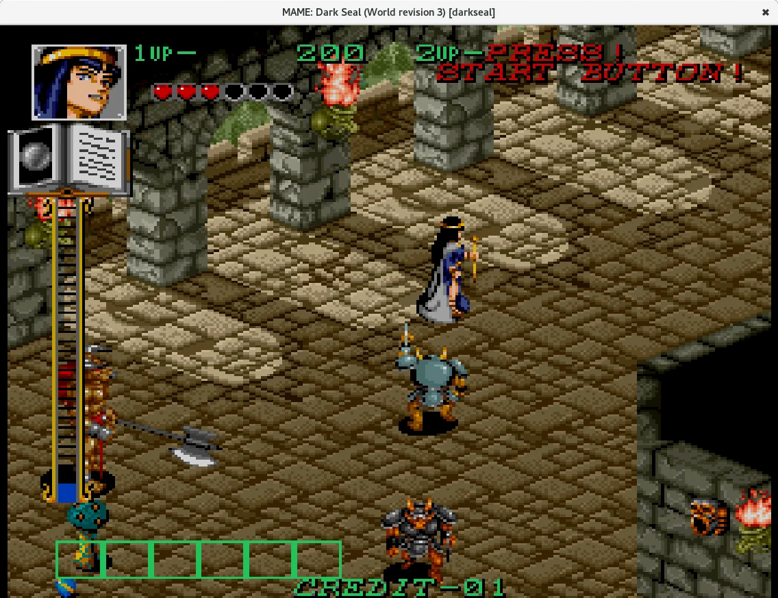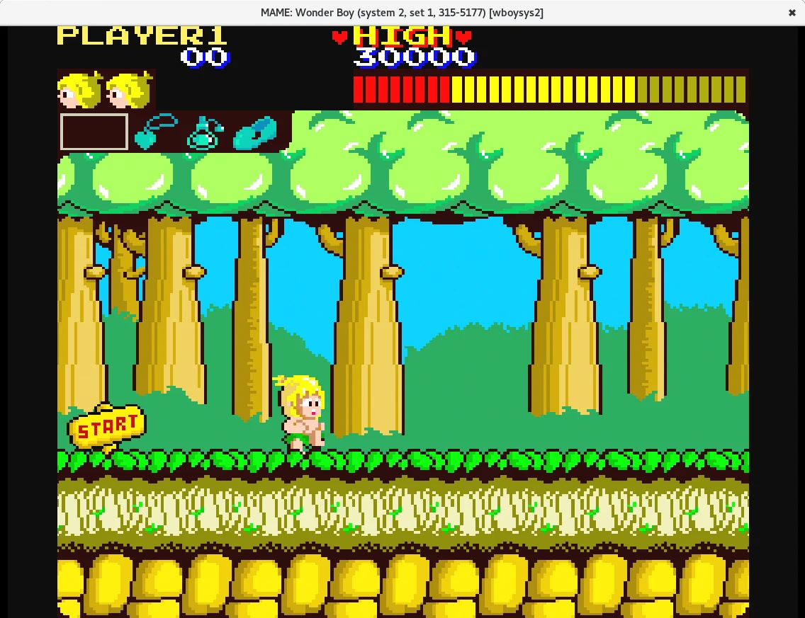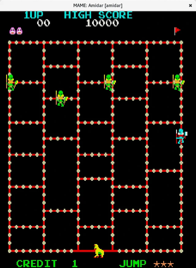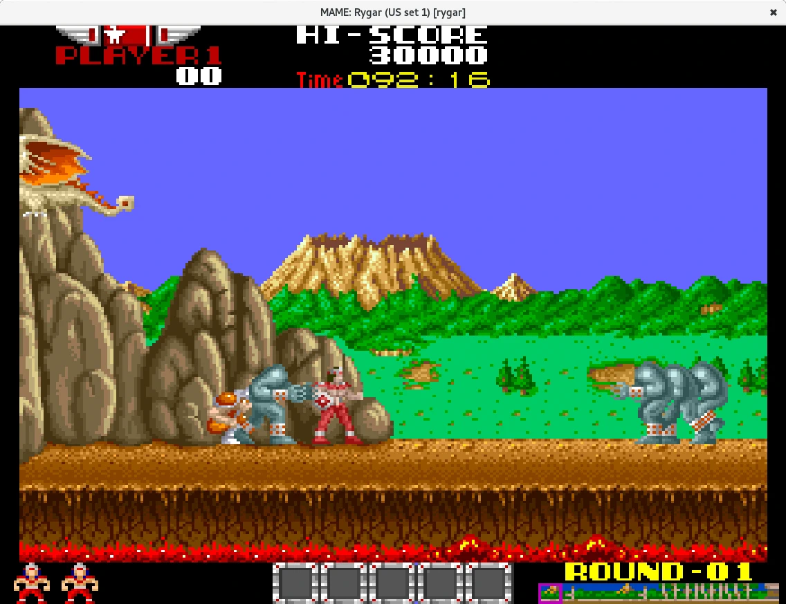Si hay varios resultados para el mismo nombre de juego iremos probando a iniciarlos uno a uno hasta que se abra una ventana emergente con el juego. Las teclas por defecto del primer jugador son las flechas del teclado, la tecla Alt-izquierda para el botón 1, Ctrl-izquierdo para el botón 2 y la barra espaciadora para el botón 3. Iniciado sdlmame en la sección de Input > Player 1 podremos configurar las teclas. Las teclas 1 y 2 nos permitirá seleccionar entre uno y dos jugadores y la tecla 5 introducir monedas o créditos.