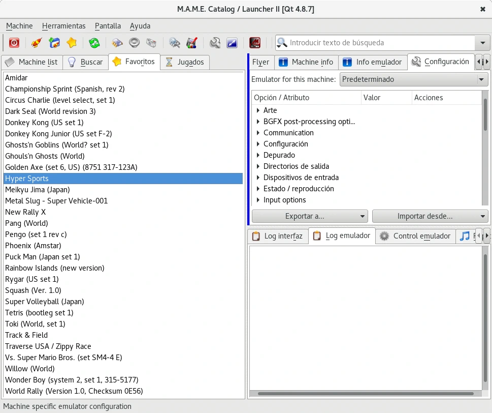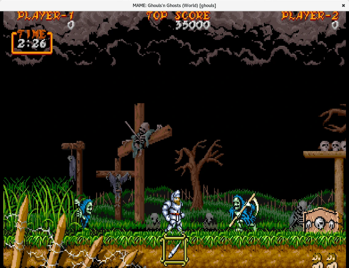 Instalados estos paquetes y descargada una ROM de ejemplo como la de Ghouls & Gosht de Emuparadise y colocada en un directorio (no hace falta descomprimir el archivo de la ROM) iniciamos el lanzador QMC2. QMC2 inicialmente nos pedirá donde se encuentra el binario del emulador y el directorio donde están las ROMs. Configurado QMC2 buscaremos el juego por su nombre del que hayamos descargado la ROM.