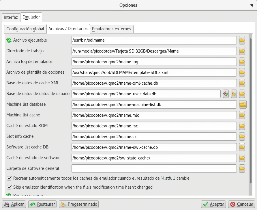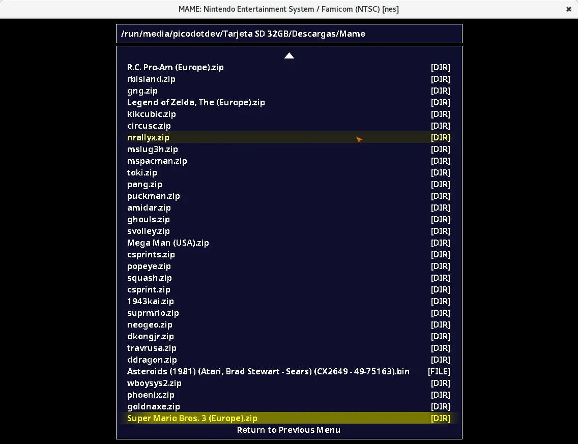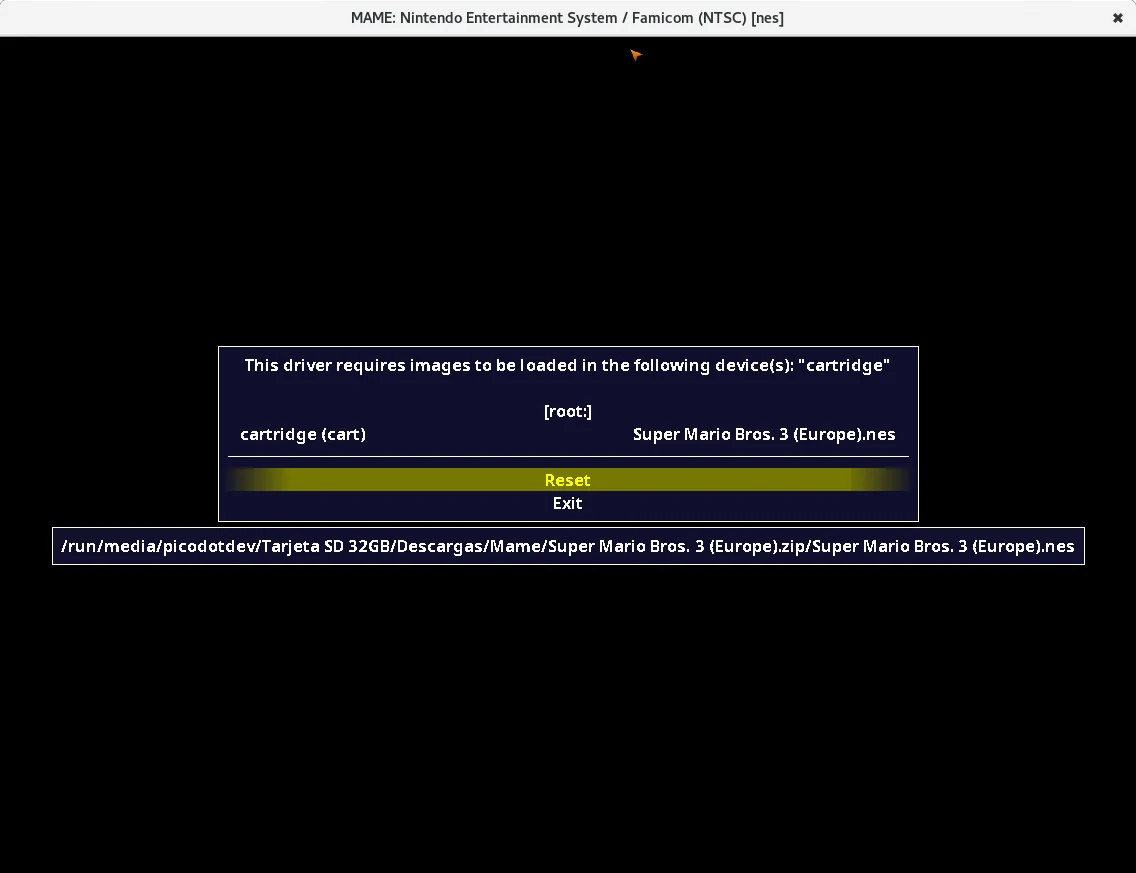 Para jugar a los juegos de la NES de Nintendo con QMC2 no he conseguido ejecutarlos, he tenido que introducir el comando sdlmame nes en la terminal buscar la ROM navegando por los directorios, seleccionarla y usar la opción de reset.
