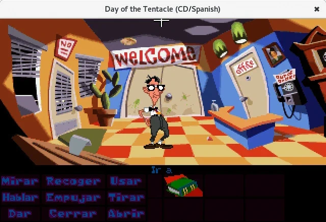 Con ScummVM podemos jugar a esos juegos del estilo point-and-click en los que se trata de probar diferentes acciones algunas lógicas otras no tanto con los objetos que tenemos o el escenario de la pantalla. Para los días de hoy gráficamente no son muy avanzados aunque sigue siendo notable su arte pixelado, pero lo principal de estos juegos no son los gráficos sino la historia que se desarrolla en los mismos. Historia que incluye bastante humor que ha hecho que perduren en el recuerdo de sus jugadores. Algunas de estas aventuras gráficas más conocidas son Monkey Island, Maniac Mansion, El día del tentáculo o Indiana Jones entre los que yo conocí.