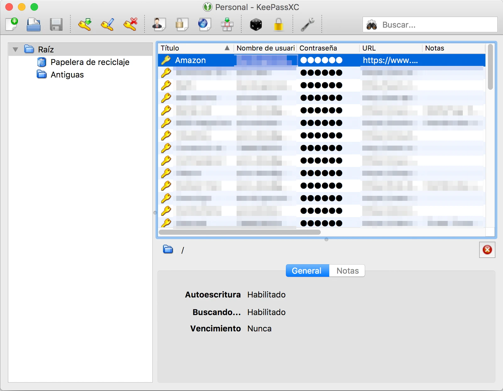 KeePassXC es una aplicación de escritorio gestor de contraseñas que tiene las funcionalidades adicionales de un generador de contraseñas seguras, la posibilidad de realizar la funcionalidad de authenticator para activar la verificación en dos pasos en servicios que lo ofrecen como Google, Amazon o PayPal. También guarda un historial de las contraseñas antiguas usadas para cada servicio que permite recuperar una contraseñas antigua en caso de ser necesario o por algún error al hacer el cambio de contraseña.