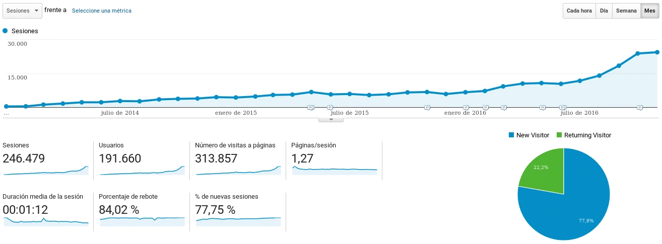 A pesar de la gran mejora en número de visitas mensuales durante este año cuesta un horror hacer crecer al blog y escribir y publicar al ritmo que lo he estado haciendo durante estos últimos meses. Hay que tener un poco de intuición y algo de suerte para acertar con artículos que se posicionen bien en los buscadores si lo que queremos es aumentar las visitas.