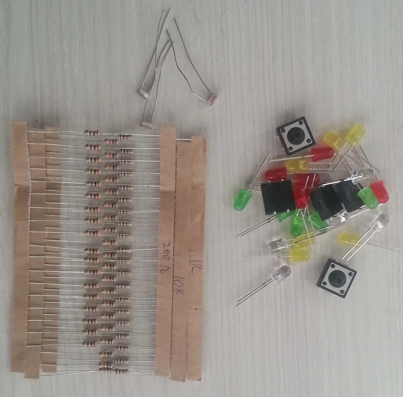 - 65 x resistors (200ohm x 20pcs, 1Kohm x 20pcs, 10Kohm x 20pcs, 1Mohm x 5pcs)