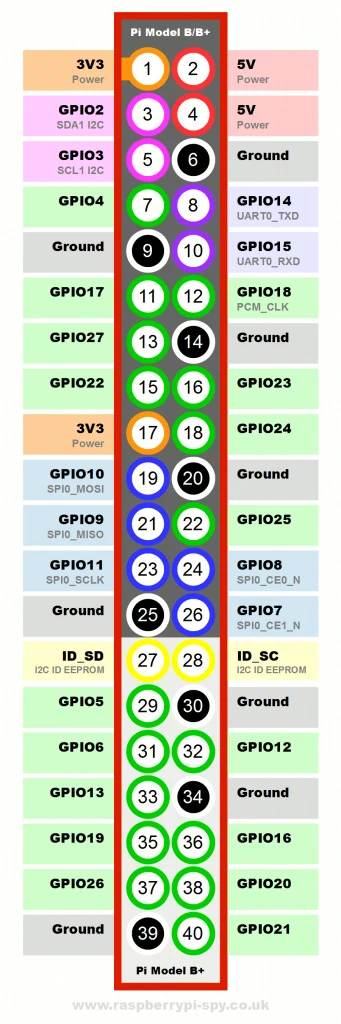 En la página del fabricante o distribuidor mayorista Osoyoo hay colgados varios ejemplos usando varios de estos elementos. También deberemos hacernos con las referencias de los pines para saber las conexiones que debemos hacer con los cables junto con la tabla de referencia de colores de las resistencias. Para usar las tablas de referencia debemos saber que hay varias formas de numerar los pines. Está la del header del 1 al 26 o del 1 al 40 secuencialmente según la disposición en el header, la que utiliza la librería wiringPi y Pi4J para numerar los pines GPIO y la de Broadcom que utiliza la librería Diozero. Estas tablas de referencia de nomenclatura son importantes porque cada una numera los pines de forma diferente, por ejemplo, según la numeración de wiringPi el pin número 3 corresponde al GPIO 8 cuando según la nomenclatura de Broadcom el mismo pin corresponde al GPIO 0 en el modelo RPi 1 modelo B rev1 y al GPIO 2 en la RPi 3.