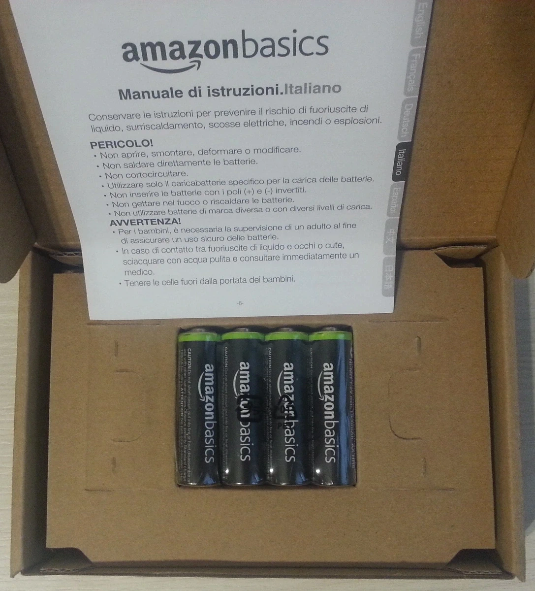 Para completar el pedido compré unas pilas AA recargables de AmazonBasics, la marca blanca de Amazon, para no estar comprando pilas cada cierto tiempo y no generar residuos que son muy contaminantes si no se depositan en lo puntos de recogida de residuos habilitados. Con las pilas y el cargador en teoría no tendré que comprar más en bastante tiempo. Hay varios modelos de pilas y en packs de 8, también hay de los tipos AAA, las que compré yo están anunciadas como que duran 1000 ciclos de cargas y descarga con una capacidad aproximada de 2000mAh.
