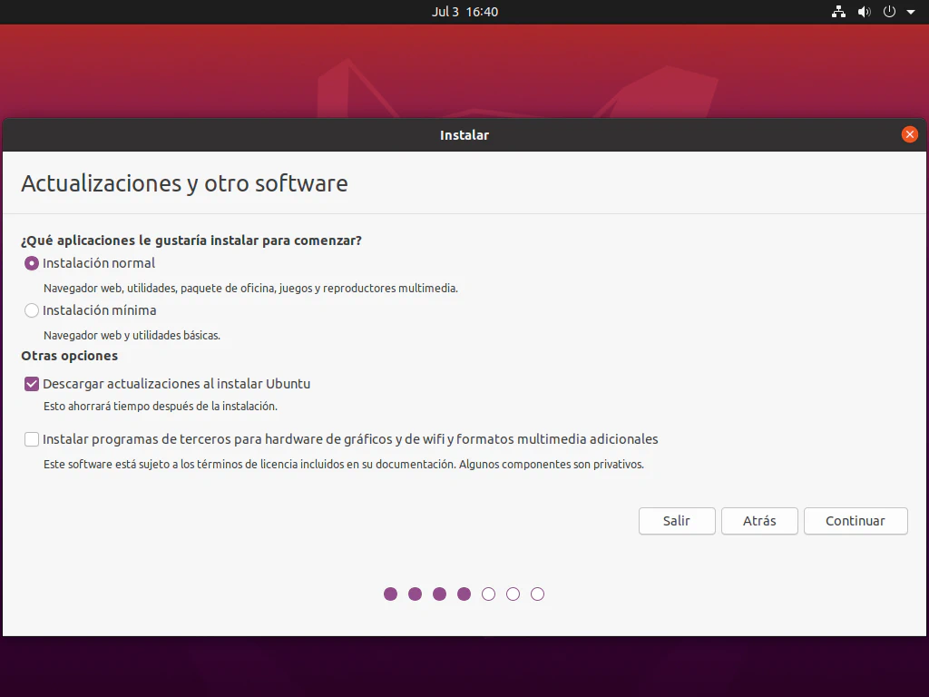 - Si se quieren descargar las actualizaciones (recomendable) y software para reproducir mp3, flash así como controladores para la tarjeta gráfica y wifi.
