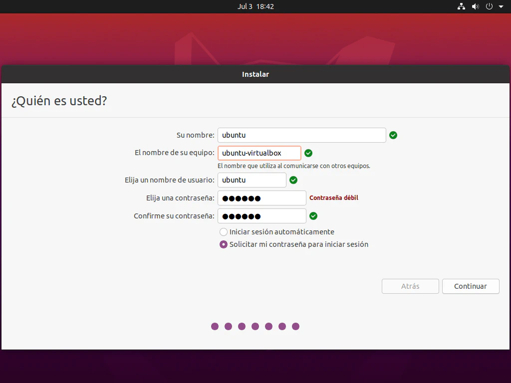 Primer inicio de sesión Ubuntu