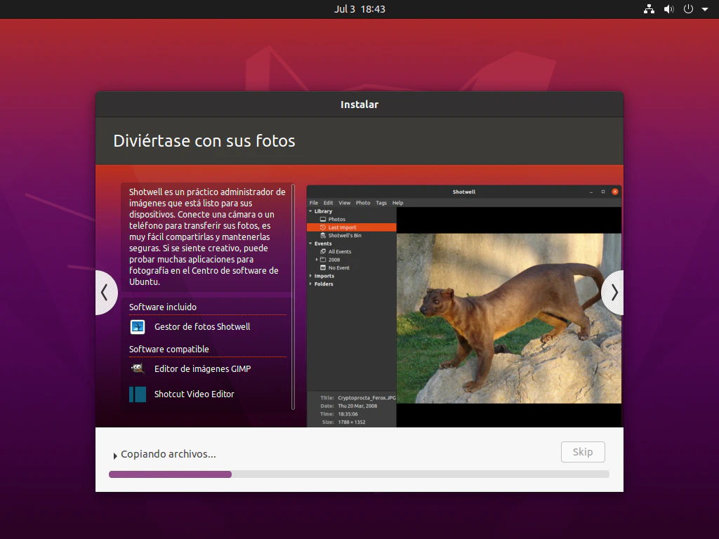 El instalador que guía en la instalación de Ubuntu realiza varias preguntas a responder por el usuario e introducir algunos pocos datos y en cuestión de menos de una hora el equipo ya está listo para empezar a usarse. En el artículo he utilizado la versión 20.04 LTS.