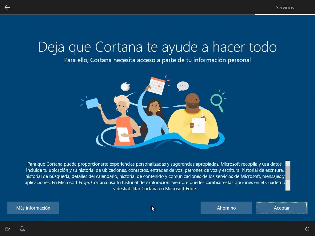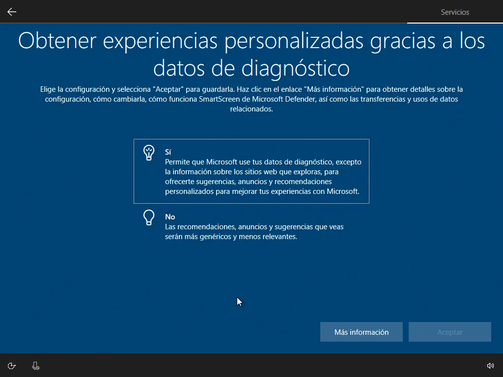 After installing Windows, it offers a new wizard where some additional things about the system are customized. Some options to select in these steps before starting to use Windows 10 are: