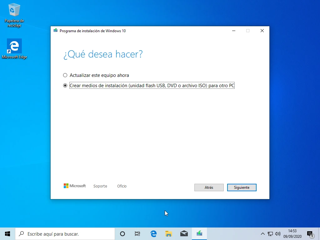 Depending on the Windows update downloaded, the screenshots or steps will vary but will be largely similar. Accessing the Windows 10 download page from a Windows 7, Windows 8.1 or Windows 10 system will display the option to download the Media Creation Tool or Media Creation Tool. Once downloaded and executed, the tool also allows the download of Windows 10 and the creation of media either a DVD or USB memory. In the case of the USB memory, it must have a capacity of at least 8 GiB and all the data it has will be lost, so your data must be saved in another external drive.