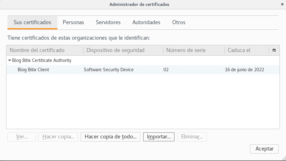 * issuer: C=ES; ST=Spain; O=Blog Bitix Certiticate Authority