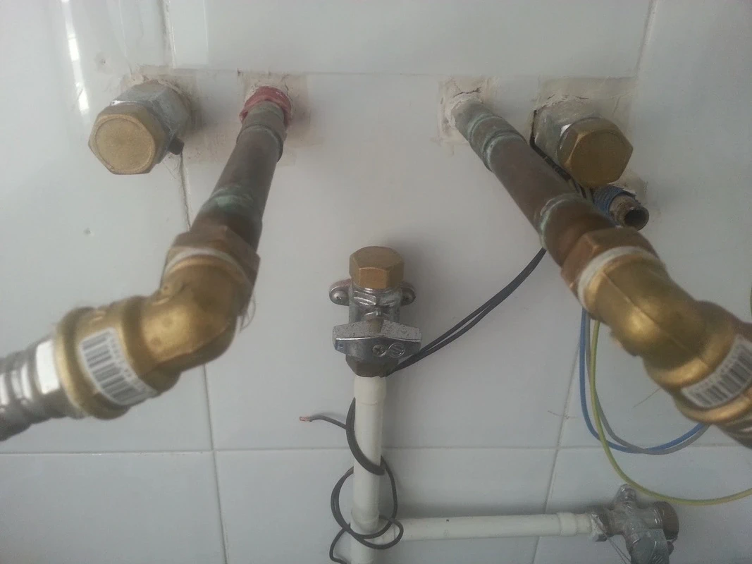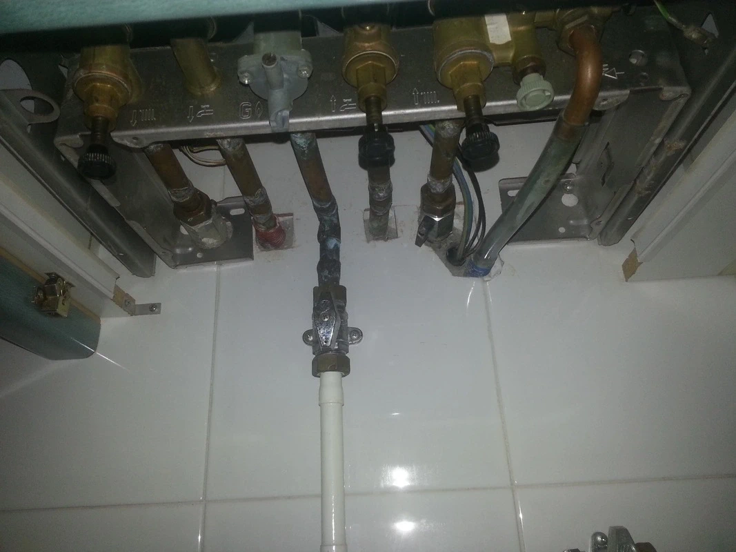 Antes de empezar la instalación del termo solicite la baja del suministro del gas, en unas dos semanas mi compañía me notificó que ya me lo habían dado de baja y comprobé ya que la caldera no encendía por falta de gas. La baja de gas implica la eliminación del contador, una posterior solicitud de alta conlleva unos 60 € por el concepto de enganche. En cualquier caso no hay que manipular la instalación del gas hasta que llega a la ventana, en todo caso cerrar las llaves de paso y colocar un tapón en el tubo del gas de la caldera que queda sin uso para que no le entre suciedad. La instalación del termo se puede realizar en el mismo lugar en el que estuviese la caldera aunque para evitar pérdidas de calor se recomienda que esté los más cerca de la ducha. Como en mi caso la caldera proporcionaba agua caliente también para la calefacción los tubos del circuito cerrado de la calefacción quedarán sin uso, he vaciado el circuito y para que no les entre suciedad los he tapado con un tapón de metal. La entrada del agua y la salida del agua caliente que usa el termo son las mismas que usaba la caldera aunque para las conexiones hay que utilizar alguna llave de paso para cortar si es necesario la entrada del agua o vaciar el termo, unos codos de fontanería apropiados según las anchuras de los latiguillos y entrada de agua y unos latiguillos de 30cm para unir el termo con los tubos del agua.