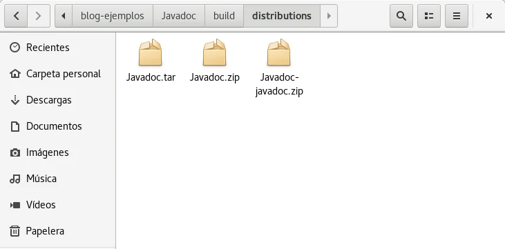 Con Gradle la documentación Javadoc se genera en el directorio build/xxx y el artefacto en el directorio build/xxx. Con las opciones anteriores este es el resultado del HTML generado.