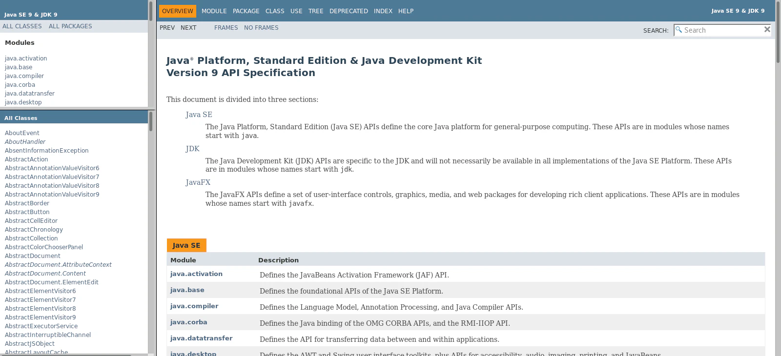 Ahora la documentación Javadoc se genera con marcado de HTML 5 e incluye un cuadro de búsqueda para encontrar más fácilmente tipos y métodos.