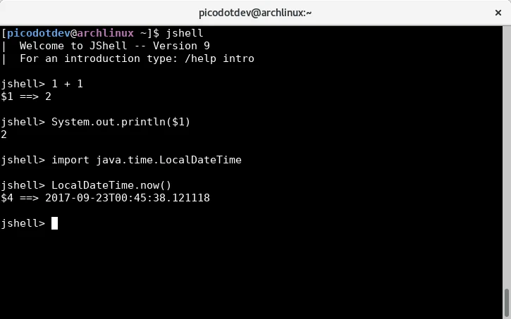 Otra de las características destacables es la incorporación de la herramienta JShell para evaluar código siguiendo el patrón Read-Evaluate-Print-Loop o REPL para hacer pruebas de código sin la necesidad de un IDE, una herramienta de construcción o toda la infraestructura de un proyecto. Esta herramienta es el comando jshell.