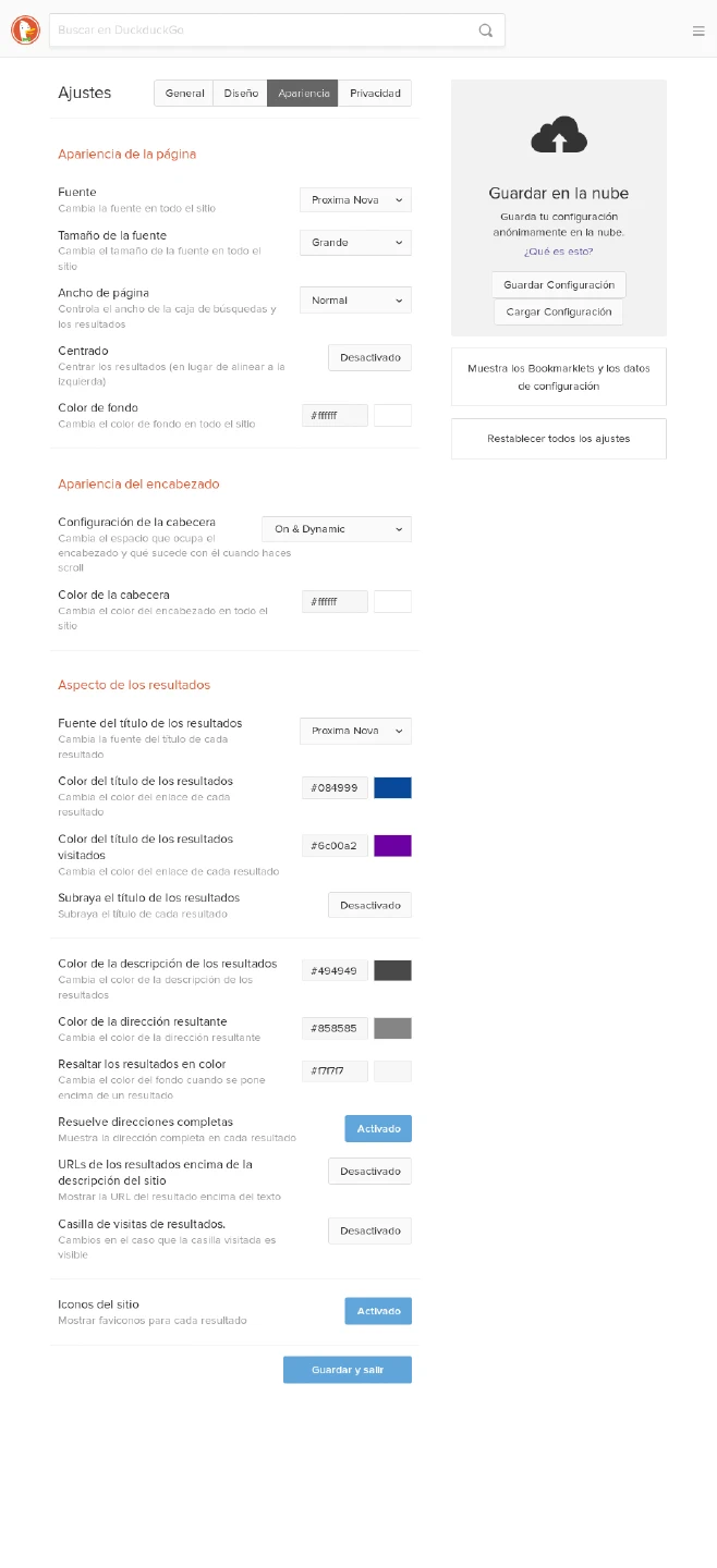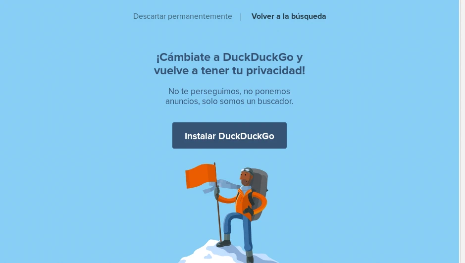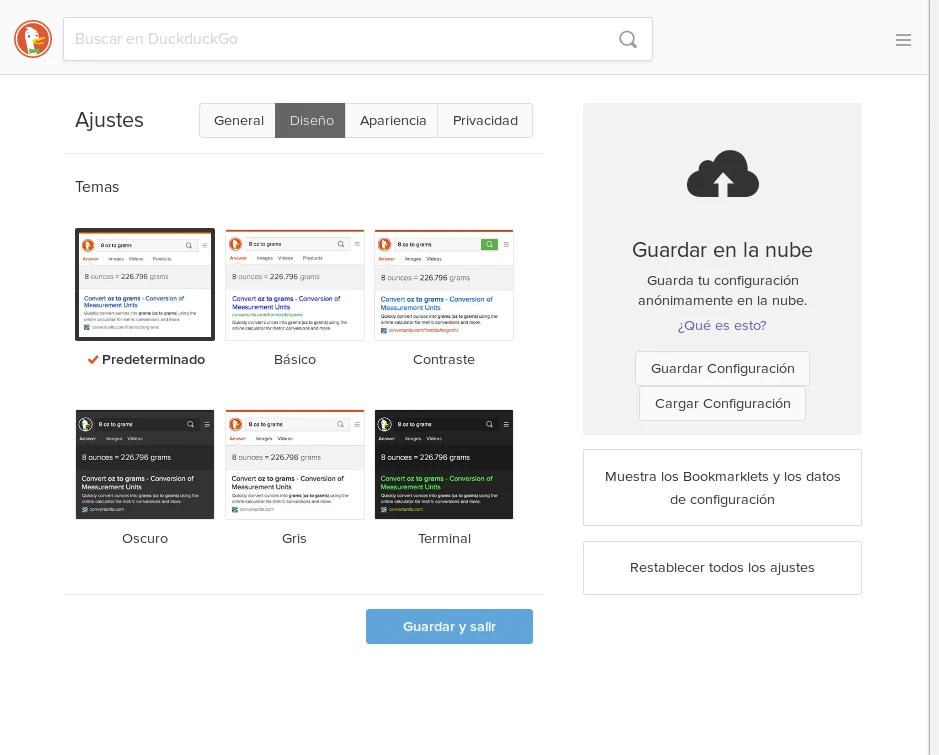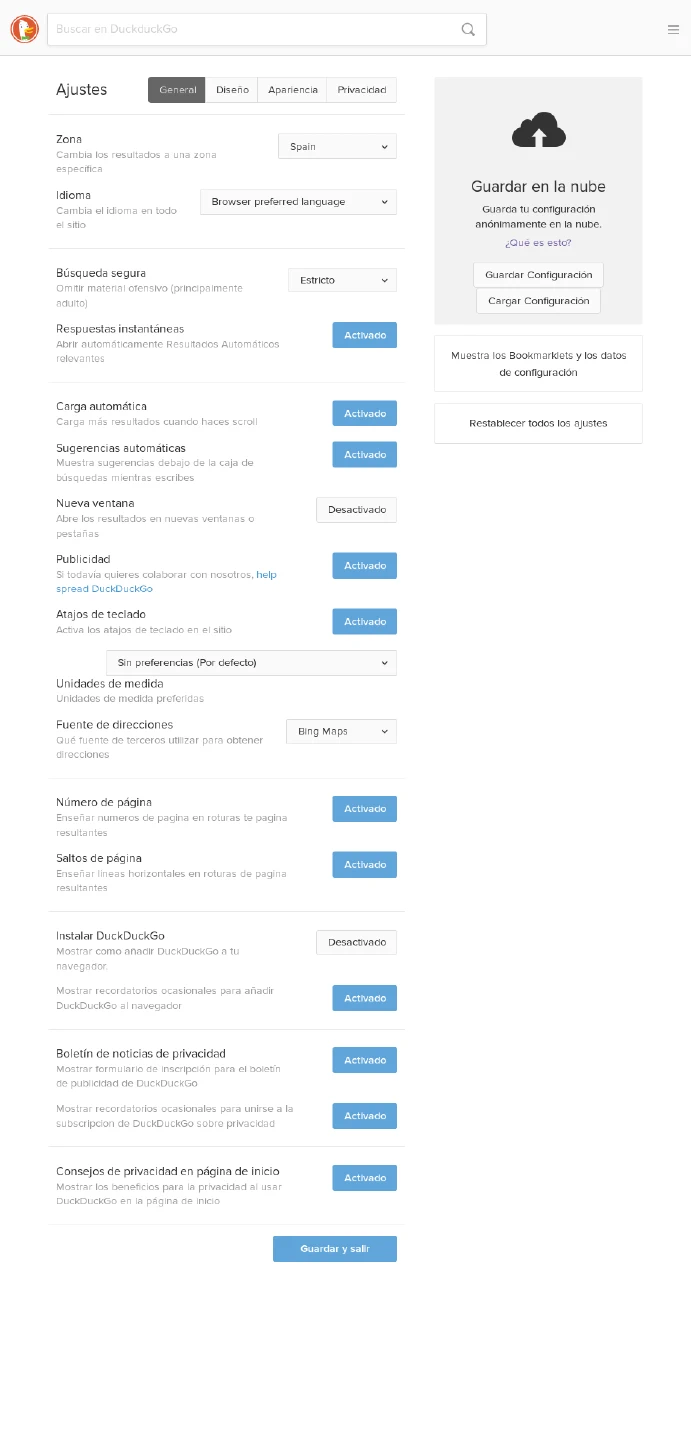 Uno de los buscadores que está ganando popularidad es DuckDuckGo ya que al contrario que otros respeta la privacidad de los usuarios no rastreando al usuario, no compartiendo las búsquedas realizadas o el historial de búsquedas y no guardando información personal. Pero también porque tiene algunas características únicas como los bang! además de ofrecer una lista de resultados apropiada y relevante a lo que el usuario está buscando. También en cierta medida se puede personalizar el buscador cambiando la apariencia, algunas opciones de privacidad y opciones generales en los resultados de búsqueda. En la siguiente página pueden comparar los términos de servicio de los principales proveedores de internet de forma simple y resumida, entre ellos los términos de servicio de Google y los términos de servicio de DuckDuckGo.