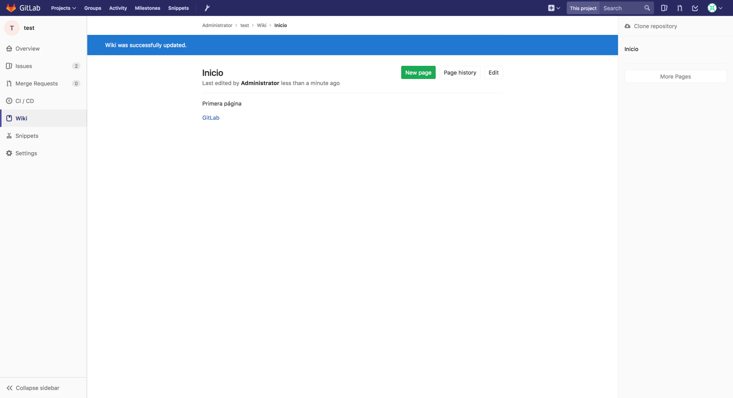 Gestión de peticiones, wiki y pages con GitLab