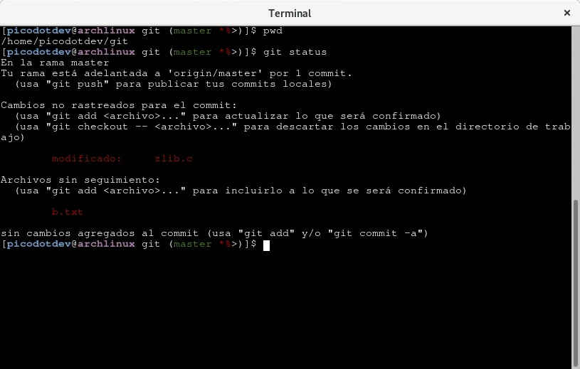Otro caso habitual es añadir la rama de git del directorio actual de trabajo y si esta tiene cambios como comento en Prompt de la terminal personalizado en carpetas de git con el intérprete Bash. El script necesario que proporciona Git es más complejo que el caso anterior pero con la misma finalidad, el script está en git-prompt.sh y requiere modificar la variable de entorno PS1 o bien PROMPT_COMMAND.