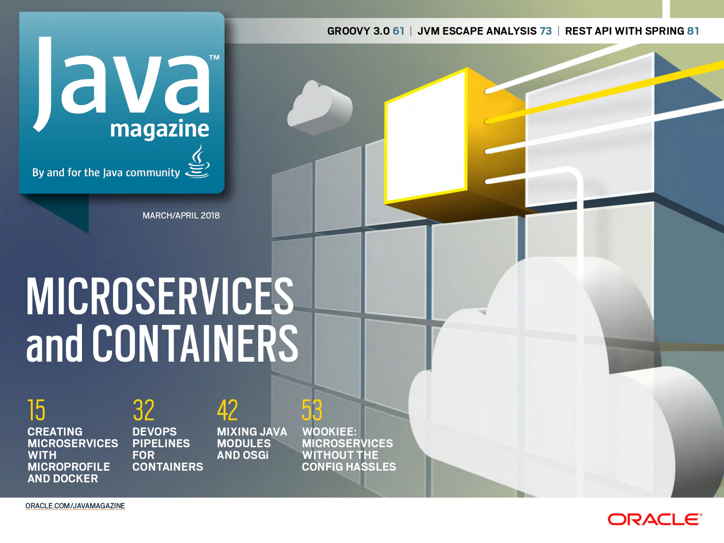 La revista Java Magazine es una publicación bimensual gratuita que contiene artículos técnicos sobre temas muy variados relacionados con Java. Las revistas pueden consultarse directamente en la web o de forma más cómoda descargándola a nuestro ordenador en formato de archivo PDF. También es posible suscribirse a una lista de distribución para recibir mediante un correo electrónico una notificación cuando se publique un nuevo número de la revista o estar atento y seguir al twitter de la revista @Oraclejavamag. Su longitud ronda algo menos de 100 páginas por número.