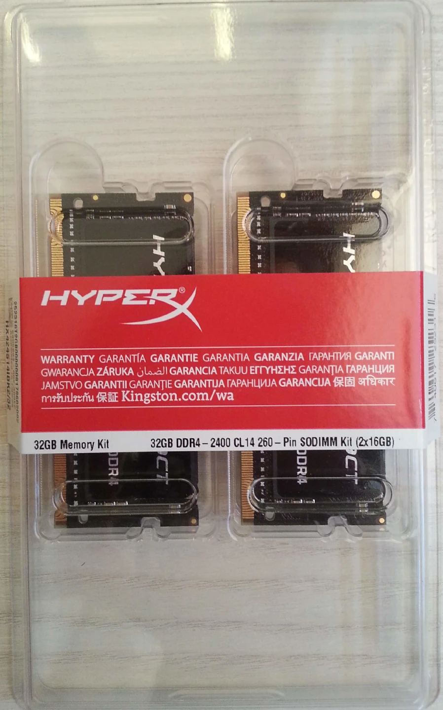 El kit de la memoria DDR4 a 2400 Mhz no tiene nada especial. Cada módulo está empaquetado en un blister de plástico.