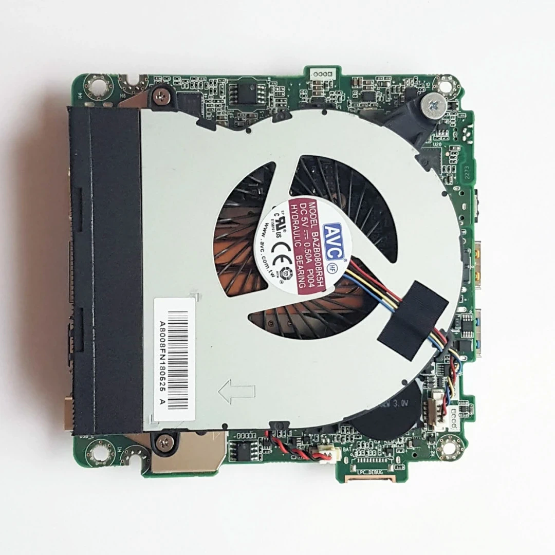 El ventilador está en la parte superior del NUC, para acceder a él hay que desmontar la placa base con el objetivo de limpiar el polvo que se le acumule para que su capacidad de refrigeración sea eficiente. En el momento que funcione más rápidamente de lo normal en tareas que no requiere demasiada computación hay que hacerle una limpieza y al disipador.