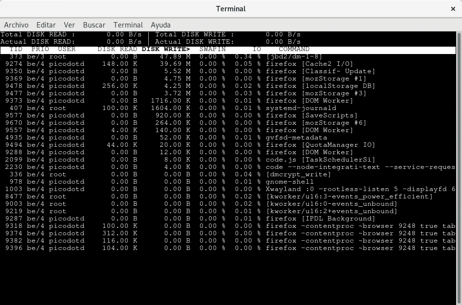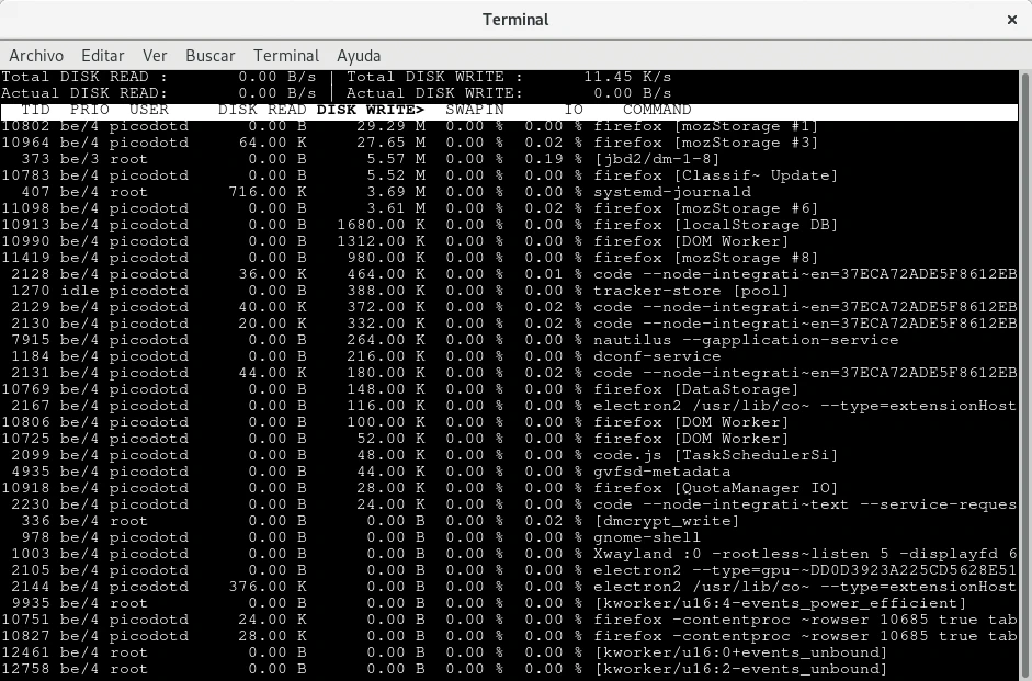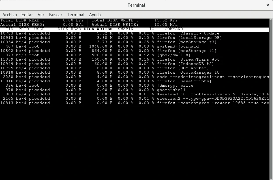 Monitorizar procesos que realizan lectura o escritura al almacenamiento en GNU/Linux