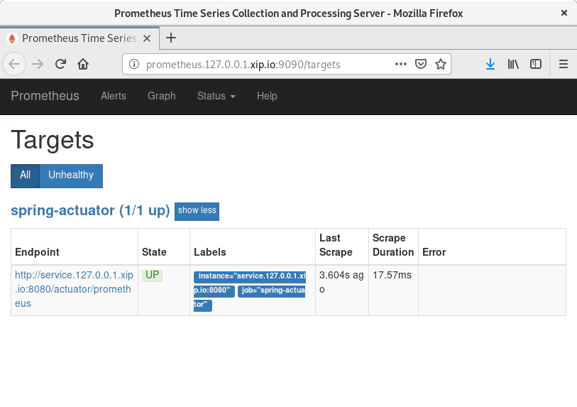 Aún quedan algunas preguntas por responder ¿como agregar los datos de múltiples instancias? ¿si se crean nuevas instancias del servicio como puede conocer Prometheus los nuevos targets que se han creado? En el ejemplo solo hay una instancia del servicio y la configuración de Prometheus es proporcionada por un archivo estático. Aún desconozco las respuestas, no lo he investigado en detalle, hay alguna pregunta sobre este tema en StackOverflow y por la respuesta Prometheus no tiene un adaptador para Eureka entre los varios servicios de descubrimiento que sí soporta en su configuración.