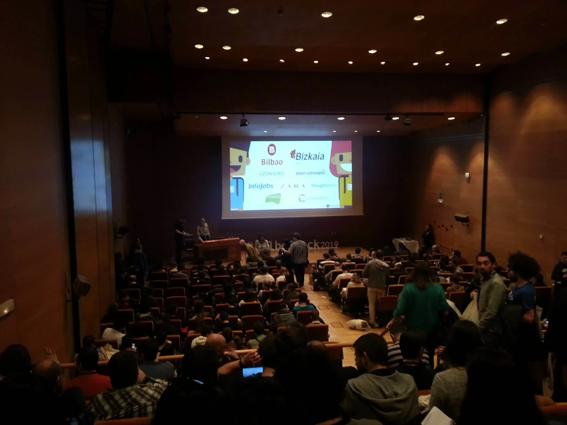 La octava edición de la BilboStack sigue fiel a su cita en el calendario a finales de enero como en anteriores ocasiones. Tampoco cambia el formato de cuatro presentaciones en dos tracks simultáneos y de ser únicamente de media jornada a la mañana par disfrutar a la tarde del networking, comida y de Bilbao para aquellos que así quieran y aprovechar el viaje si se viene de fuera. Tampoco cambia el recinto como en la edición anterior de el Palacio Euskalduna, con un aforo bastante amplio aún así las entradas han llegado a agotarse y no han quedado prácticamente sitios libres en la sala A3.