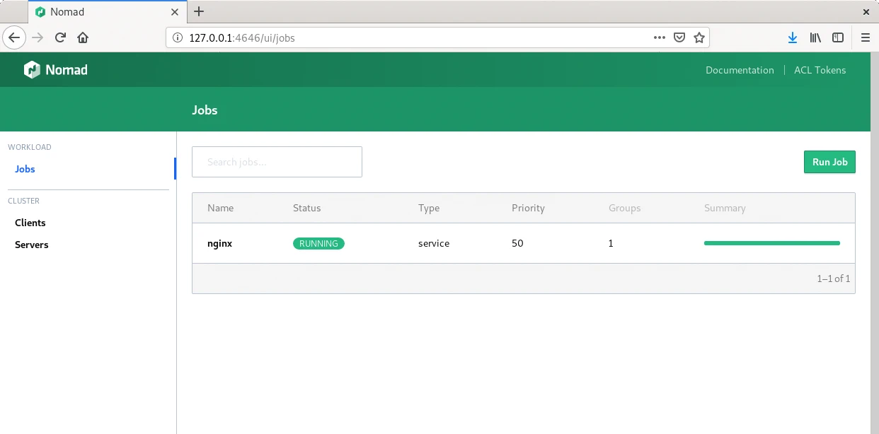 Nomad y Nomad cada uno son un binario ejecutable sin ninguna otra dependencia. Basta con descargarlos e incluirlos en el path del sistema. En este ejemplo hay definido un job compuesto por una tarea de un contenedor docker de nginx configurado en un puerto aleatorio y con 1 GB de memoria para cada una de las dos instancias del servicio. Dado que lo usa es necesario instalar Docker.