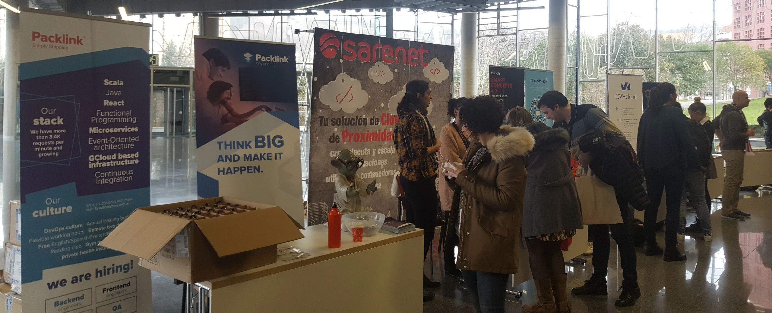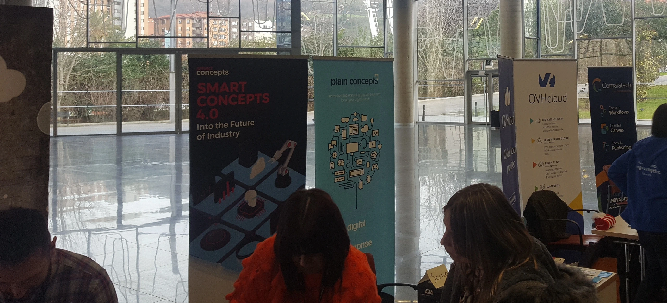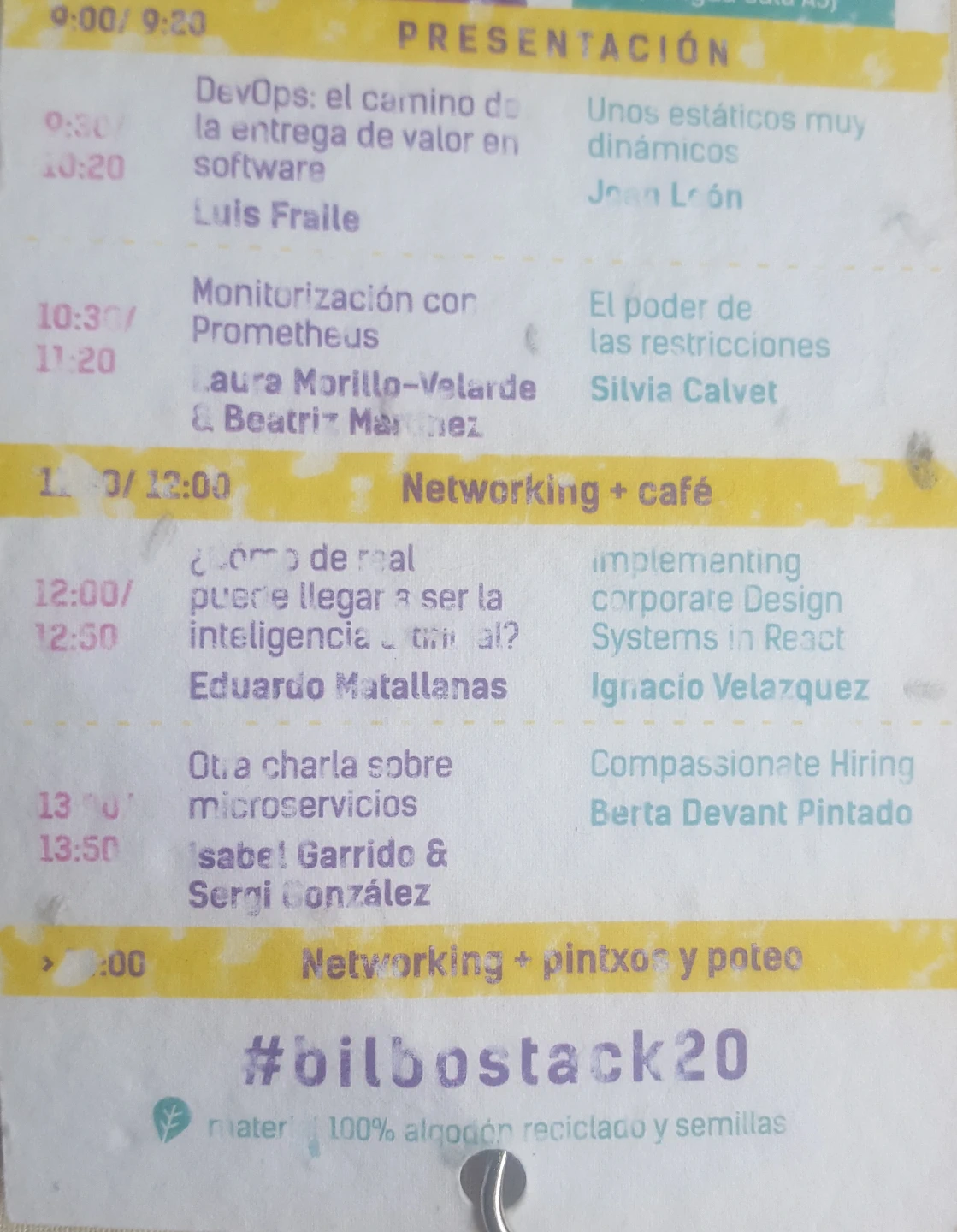 Este año la acreditación ha sido un detalle que esté hecha de algodón reciclado que incluye semillas, se puede plantar, regar y ver que es lo que surge pasado unas semanas. También ha habido una zona amplia para los patrocinadores en los que ubicar sus stands, una oportunidad para conocerlos como posibles futuras oportunidades laborales, recoger varios obsequios que ofrecían y participar en algún sorteo en el tiempo de descanso entre las os primeras conferencias y las dos siguientes últimas.