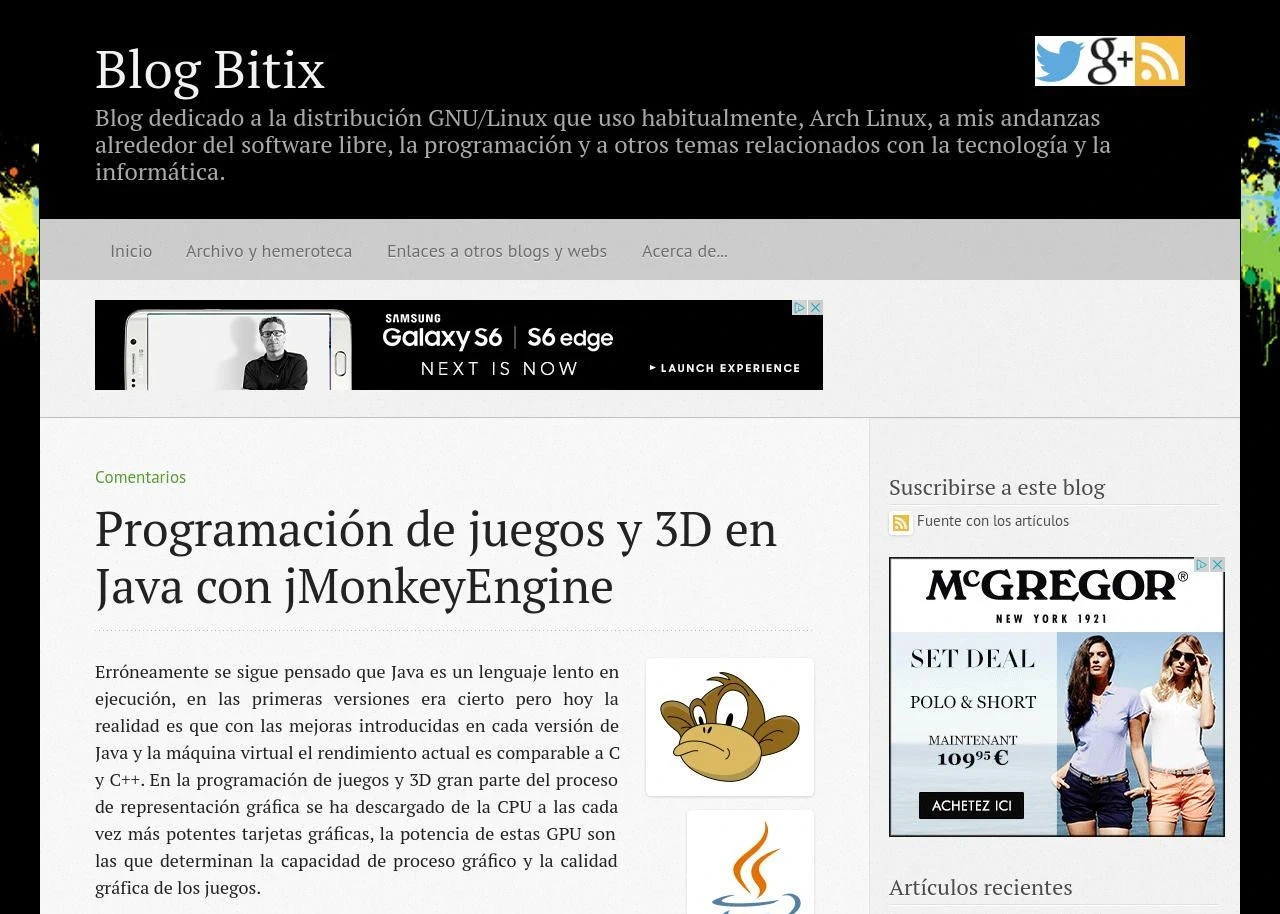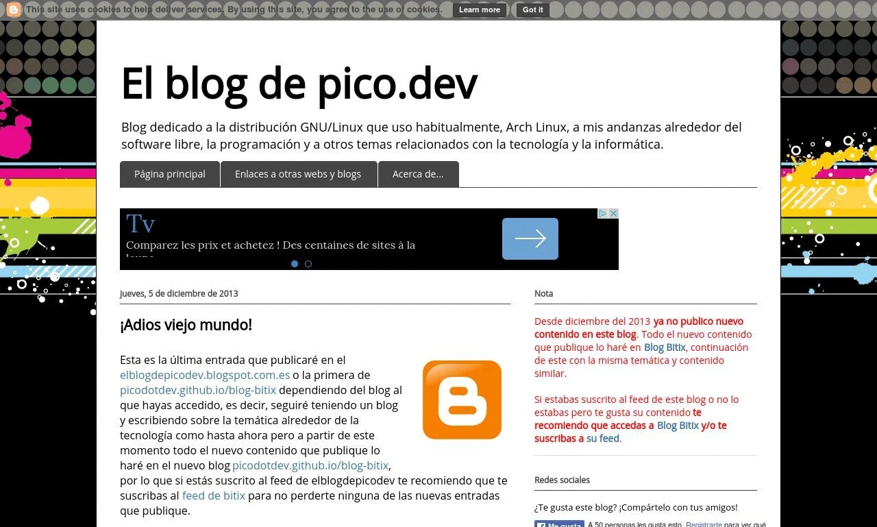 “Bueno, ¡pues ya está!, ya tengo mi propio blog, todavía está en fase de construcción así que según vaya teniendo tiempo iré haciendo pequeños cambios en los gadgets y en su disposición. Por ahora me conformo con tenerlo visible […]. Pero lo principal, escribir entradas en el blog, es algo que ya puedo realizar. Tratarán sobre temas relacionados con el software libre, incluyendo las dos distribuciones GNU/Linux que en este momento uso más habitualmente que son Ubuntu y Arch Linux, temas de tecnología, quizá temas de programación, experiencias personales sobre los mismos y otras cosas que se me vayan ocurriendo. […]”.