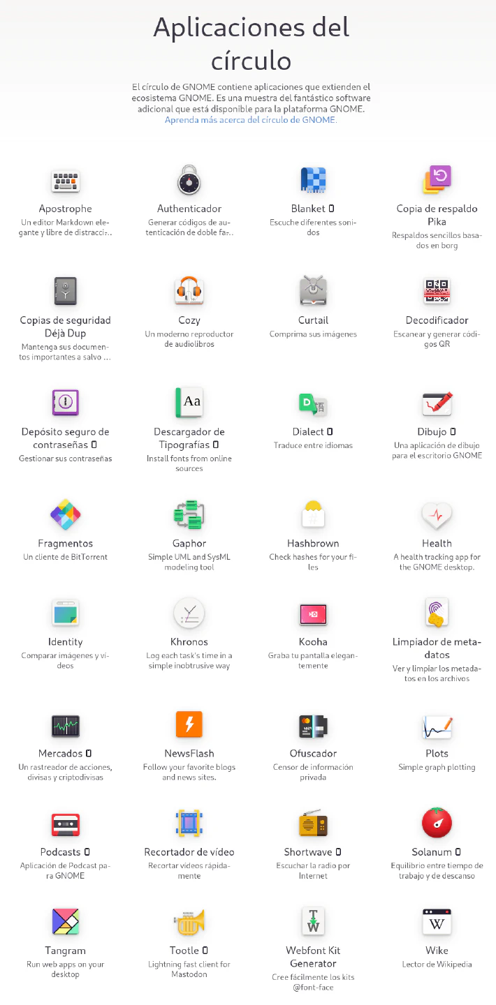 - Conjunto de aplicaciones del núcleo o esenciales de GNOME