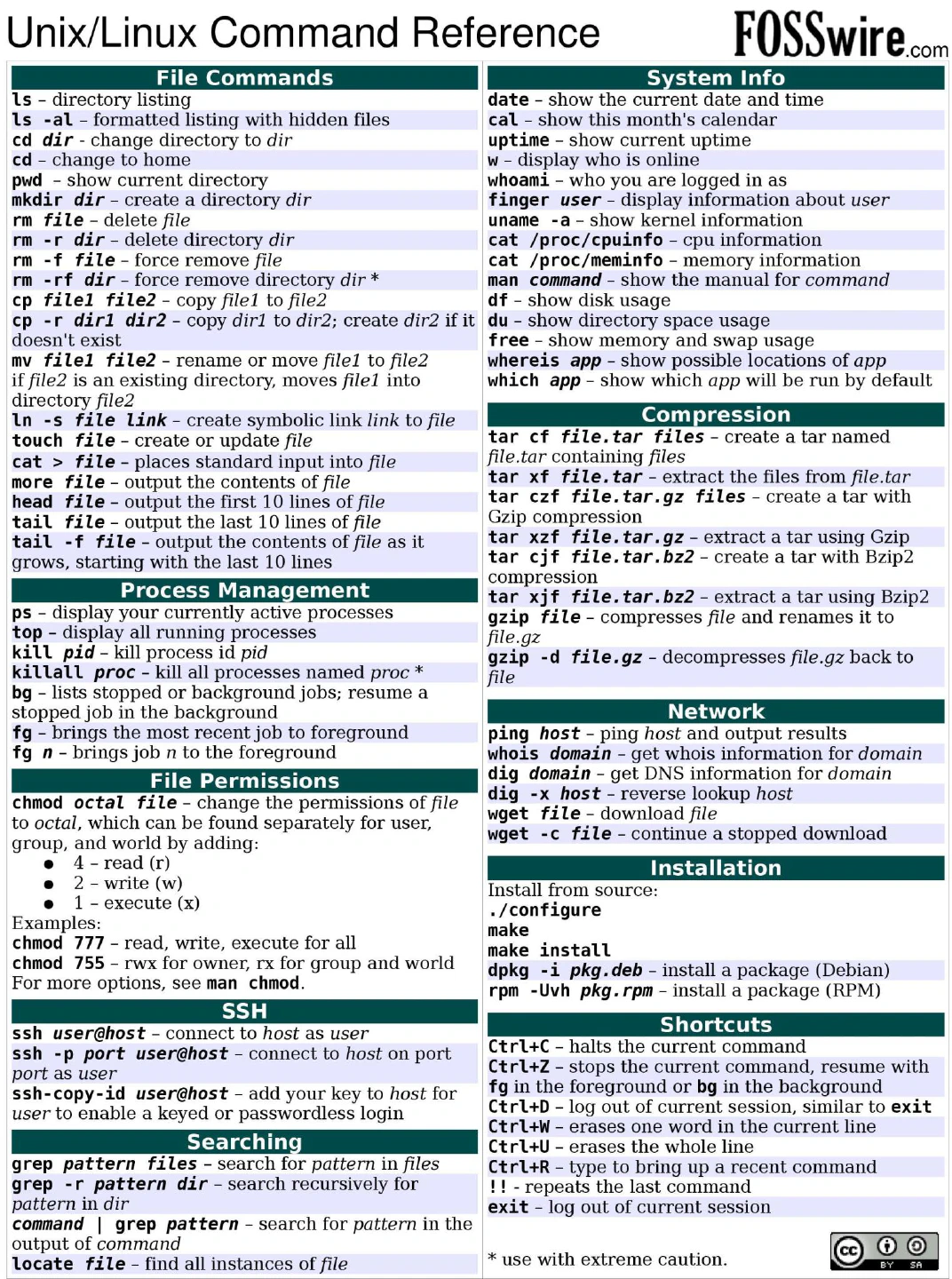 Desde la línea de comandos hay disponibles una colección de comandos útiles para realizar ciertas tareas de forma rápida y sencilla. Los comandos se pueden incluir en scripts de bash o pequeños programas para el intérprete de comandos y componer la entrada de unos comandos con la salida de otros a través de tuberías dándoles más versatilidad.