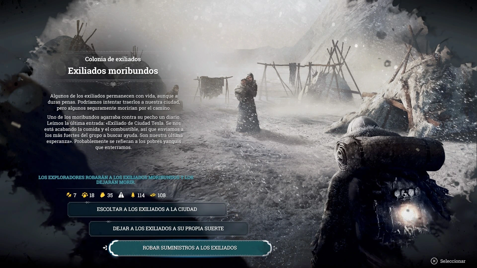 Durante las exploraciones habrá que tomar la decisión de dejar abandonados a algunos colonos en vez de acogerlos en la colonia dado que no hay casas, comida o recursos para todos los colonos, un objetivo del juego puede ser intentar salvar a los máximos colonos que se pueda.