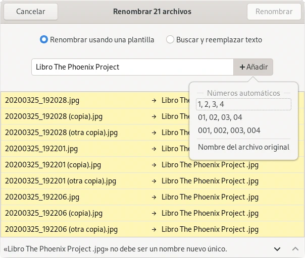 Renombrar múltiples archivos en GNOME